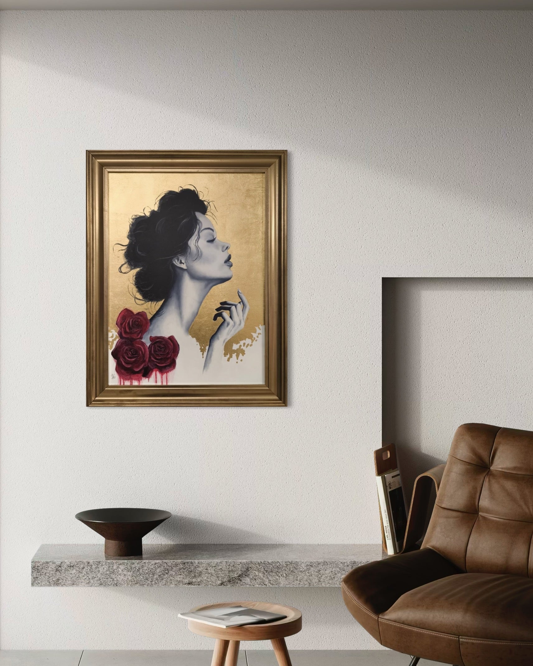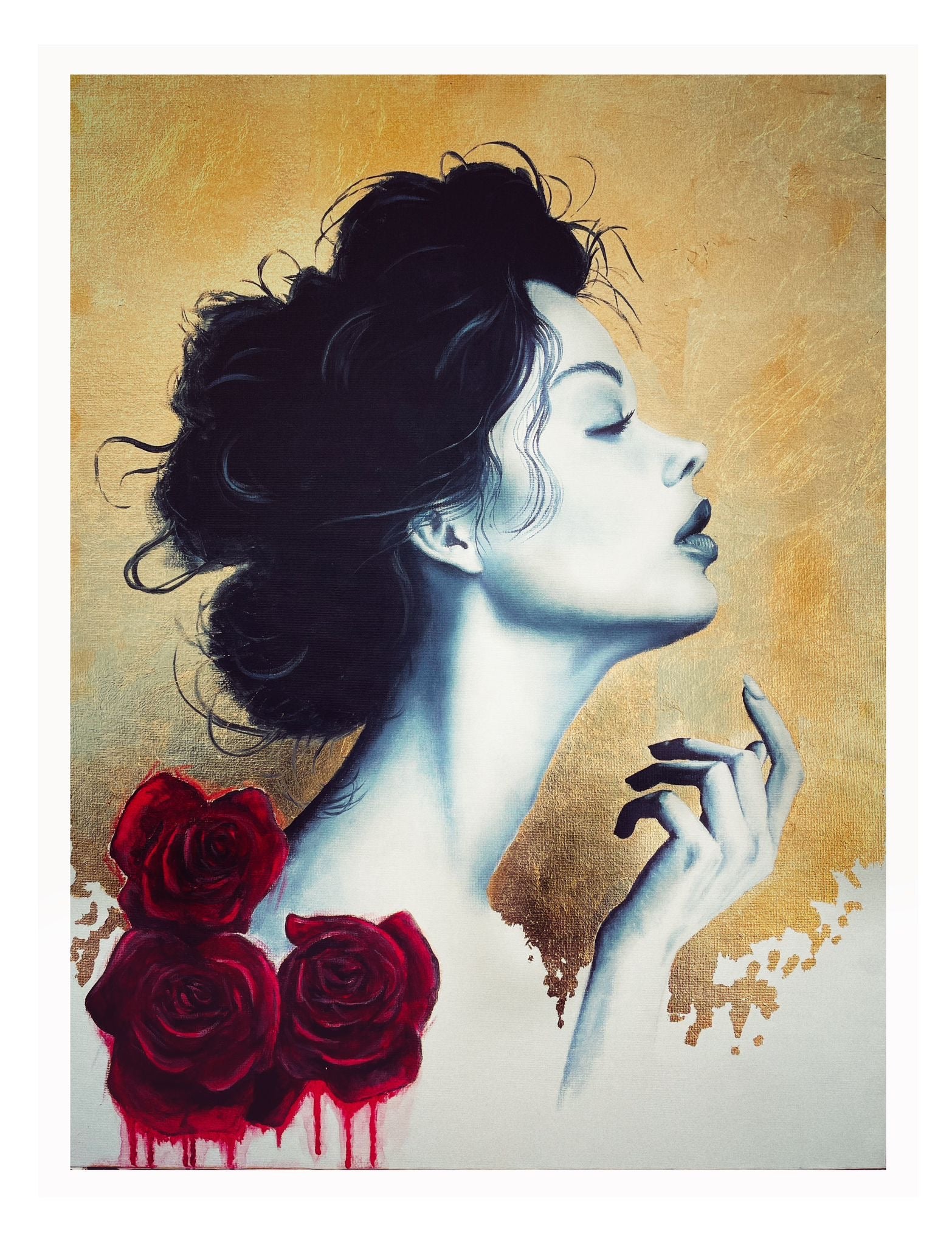The artwork features a contemporary, fashion-inspired portrait with strong elements of modern minimalism, surrealism, and glamour illustration.